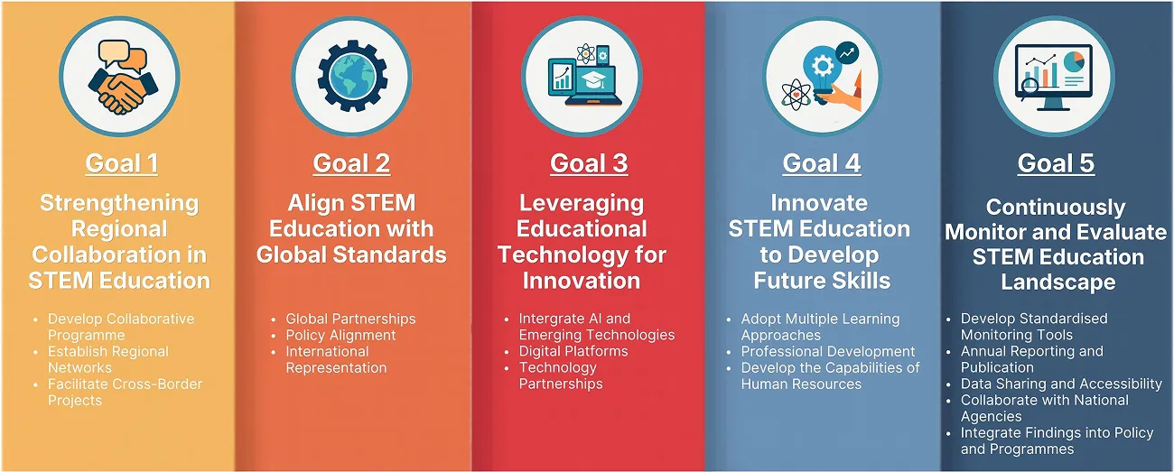The establishment of the Centre reflects a shared regional commitment to advancing STEM education systems and nurturing human resources equipped with the knowledge and skills required in the twenty-first century. In particular, the Centre seeks to address key regional challenges, including improving student performance in science and mathematics in international assessments such as the Programme for International Student Assessment (PISA), supporting sustainable development goals, and preparing a skilled workforce capable of driving innovation and enabling countries to overcome the middle-income trap.