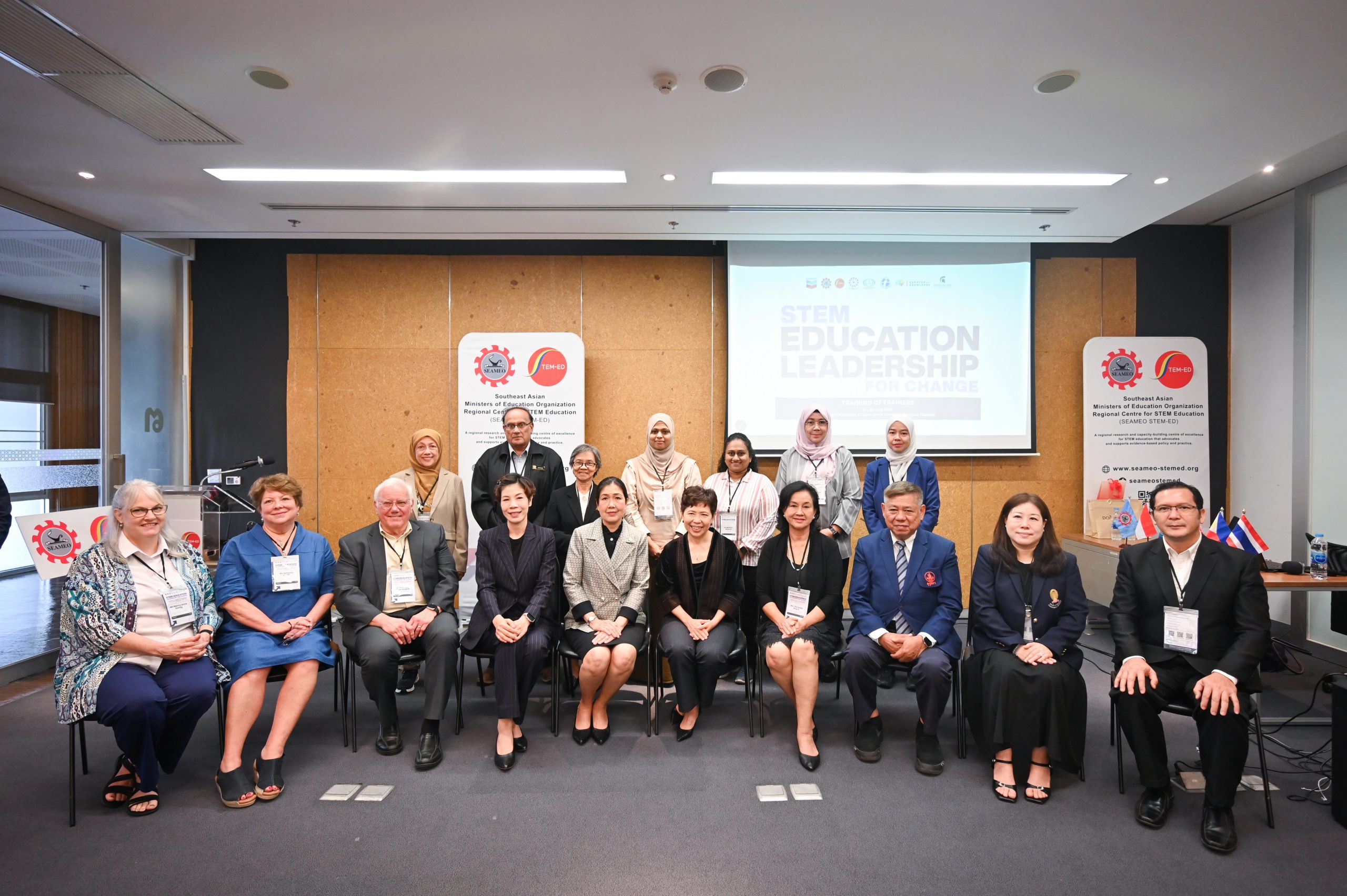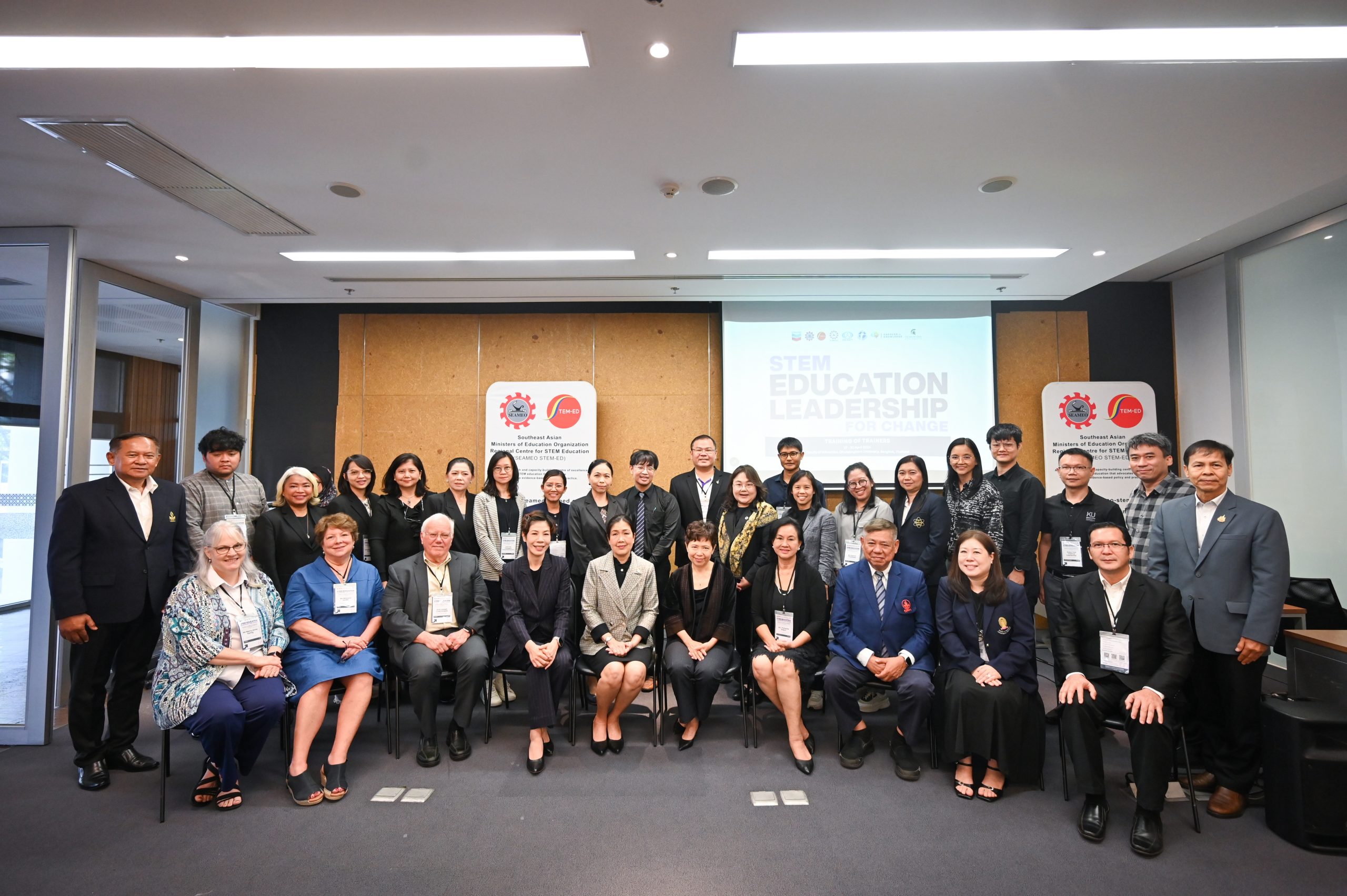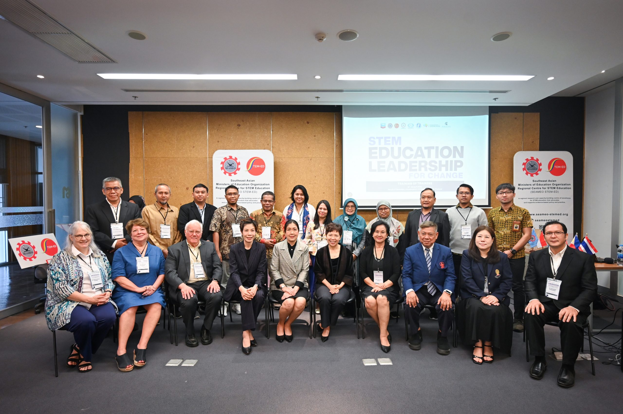 Participants include representatives from SEAMEO STEM-ED, SEAMEO INNOTECH, SEAMEO RECSAM, SEAMEO SEAMOLEC, and Caravan of Knowledge, alongside officials from Thailand’s Ministry of Education agencies, including OBEC, IPST, ONESQA, the Teachers’ Council of Thailand, and the Bureau of International Cooperation, Office of the Permanent Secretary. University partners from across Thailand are also participating, including Chulalongkorn University, Kasetsart University, Khon Kaen University, Naresuan University, Thaksin University, King Mongkut’s University of Technology Thonburi, Mahasarakham University, Chiang Mai University, Phuket Rajabhat University, and Asian Institute of Technology, together with international collaborators from Michigan State University, STEM Teachers NYC, the UNESCO Office for Climate Education, and Chevron as well as invited guests from the Princess Maha Chakri Award (PMCA) Foundation and Junior Achievement Thailand.