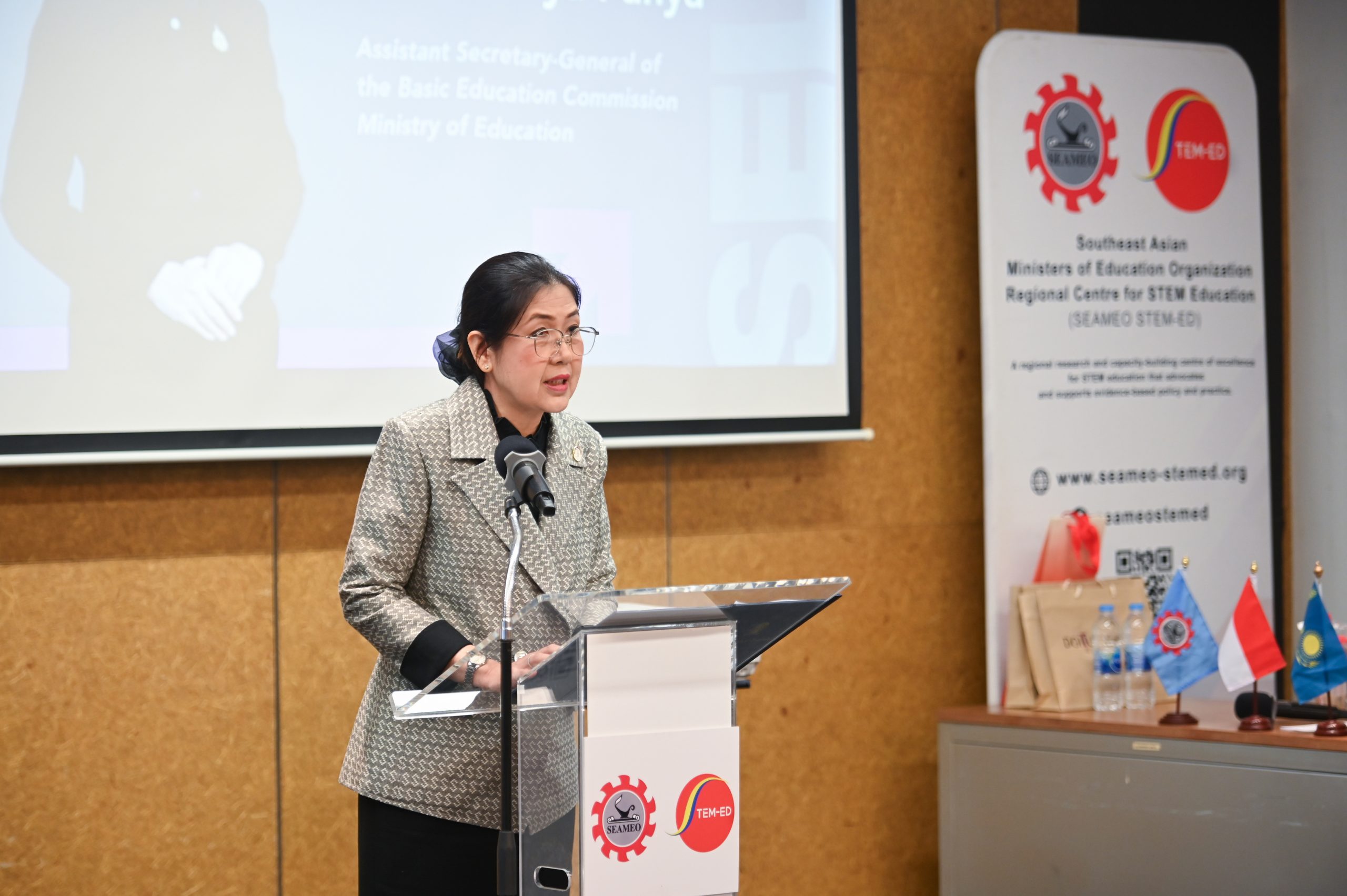 The programme also reflected regional perspectives on education reform through remarks delivered by Dr Artittaya Panya, Assistant Secretary-General of the Office of the Basic Education Commission (OBEC), Ministry of Education, Thailand. She highlighted the shared challenge of translating STEM innovation into measurable student competencies such as critical thinking, problem solving, and global citizenship, particularly within the shift toward competency-based education systems.